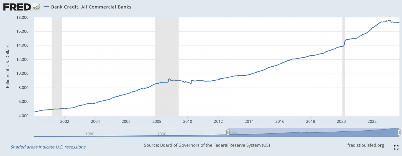 As a contrarian investor, I appreciate that many writers of like mind have called 90 of the last two recessions. I’m not trying to add my name to that list. But here is something that might have avoided your radar: rather quietly, bank credit has dipped.