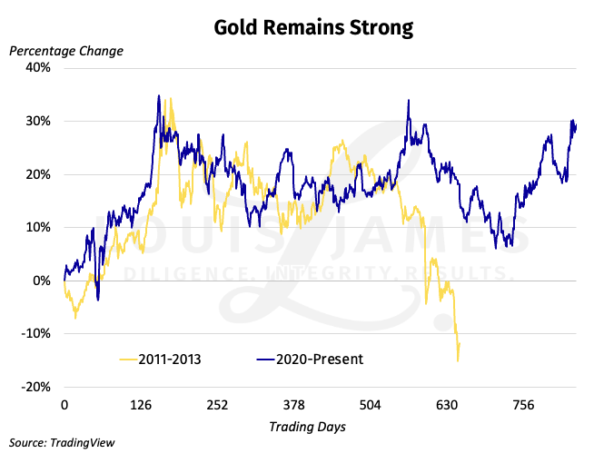 Note, this is the chart I referred to in the interview, showing that what's happening with gold now is clearly not like what happened last time. This only makes sense, given the high inflation, high debt levels, and high alert on systemic risk.