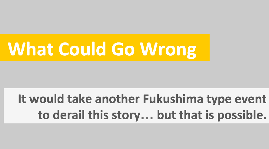 What if I’ wrong? Well, the new plants in the works still more than make up for the ones being shut down. So there’s little downside in me being too optimistic about the global warming folks turning pro-nuclear. But if I’m right… well, it will add huge upside to what’s already a positive scenario.