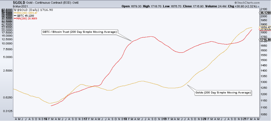 I do think there is something to this, in that highly liquid capital chasing after the flavor of the day can easily slosh back and forth between Bitcoin and gold, depending on which is rising faster at the time.
