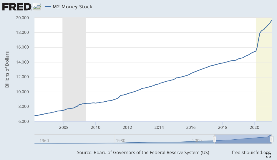 Well, for one thing, the money-printing does matter, and it has been off the charts—even the post-2008 charts. Some argue that the US has been printing money like crazy since the GFC without creating high inflation and can therefore print all it wants now. This ignores the fact that what’s been printed over the last year is a massive break above previous money-printing. There is literally no similar event in the data. Claims that current money-printing doesn’t matter are not based on the data.
