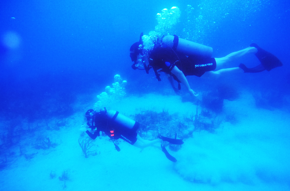 The number-one rule for all diving is to always breathe constantly and calmly—never hold your breath.