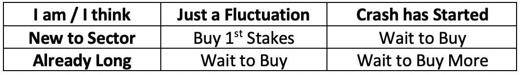 The way I see it, what to do now depends on two key variables: whether or not I’m new to the sector and whether or not I think the next big market crash has begun.
