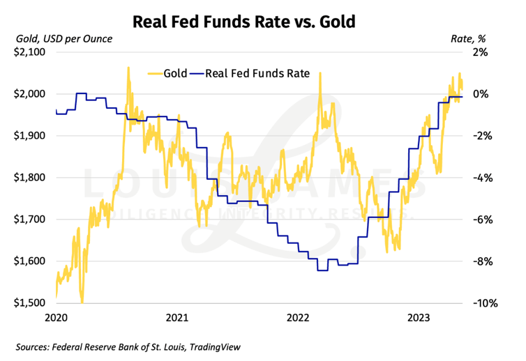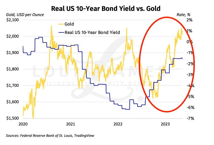 When I first started in this business almost 20 years ago, my mentors and peers all pointed to real interest rates as being the single most powerful driver for the gold-dollar exchange ratio. I’ve said so myself in more interviews than I can count.