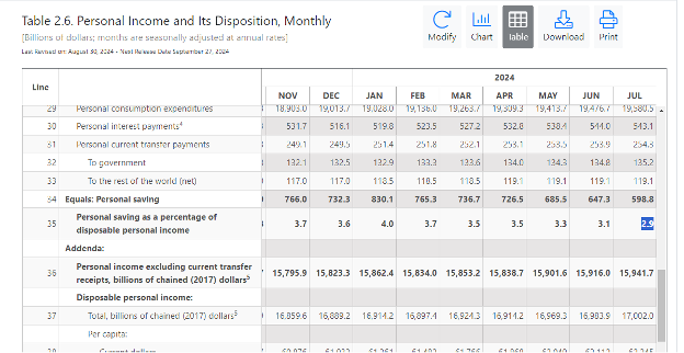 Economic statistics are often confusing, as they can have similar names. In this case, we used to “Net Savings,” which is part of the US Bureau of Economic Analysis (BEA) publication on GDP and personal income. This is found in Table 5.1, Line 57: