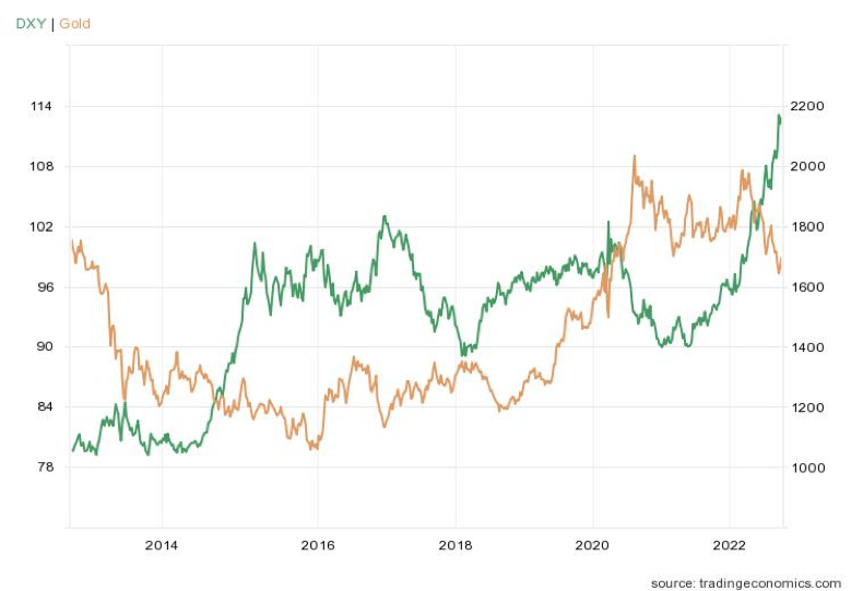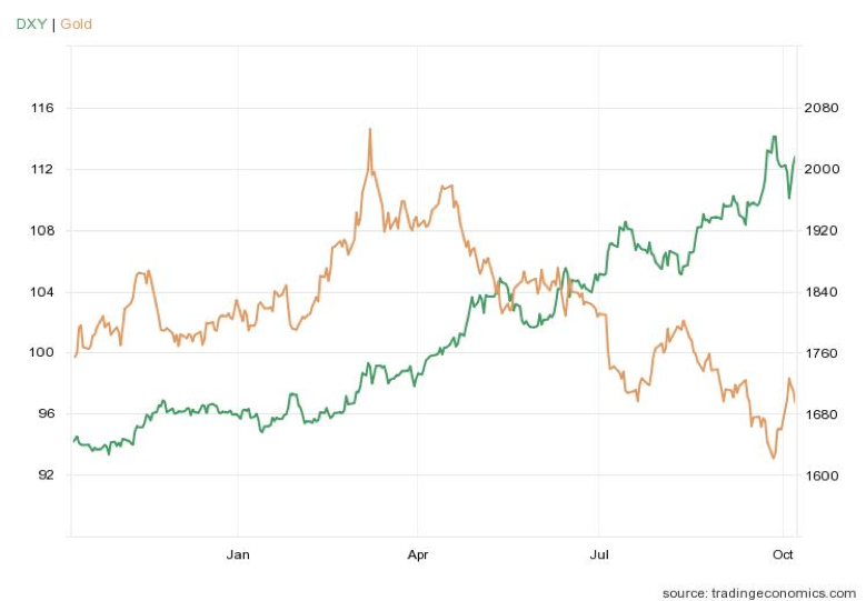 Last week (early October 2022) the British pound rebounded after the Bank of England (BoE) intervened to halt a sudden dramatic decline. A new government budget spooked markets and threatened major pension funds, which dropped the pound to almost parity with the dollar. When the BoE stepped in, the pound rebounded. The euro moved in sympathy. The DXY moved inversely—and gold soared when it did.