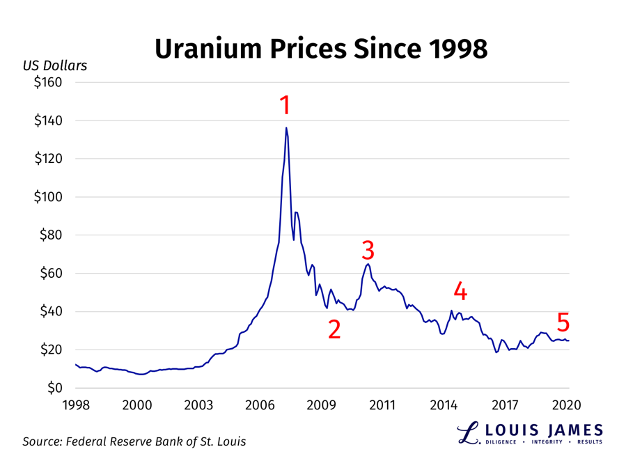 And then there’s the fact that the last time we saw a major spike, it took uranium up to almost $140 per pound—not adjusted for inflation. The next spike could dwarf that last one.