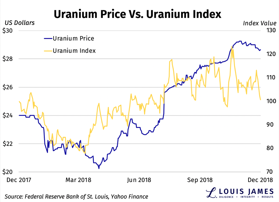 The good news is that that cannot and will not last forever. Mr. Market might ignore increasing value in uranium companies while uranium prices are fluctuating or even inching higher, but he will sit up and take notice when uranium breaks out to new multiyear highs. I think prices heading north of $30/lb. should slow or stop the selling. Prices hitting $40/lb. and rising would make a lot of headlines—perhaps at just the time when many investors will be desperate for anything that isn’t tanking. This could easily happen in 2019. When it does, recent history tells us that quality uranium stocks such as the ones I invest in should quickly double, and then go on to higher multiples.